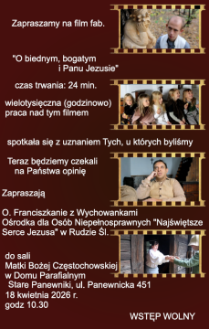 Na zakończenie Tygodnia Miłosierdzia, w sobotę o 9.00 odbył się Parafialny Dzień Seniora i Chorego. Chorzy, osoby samotne, w podeszłym wieku, członkowie Paraf. Zesp. Caritas uczestniczyli w modlitwie różańcową o 8.30 i we Mszy św. o 9.00. Po Mszy św. wszyscy zostali zaproszeni do domu paraf. na skromny poczęstunek. Podczas spotkania został wyświetlony film fabularny pt. O biednym, bogatym i Panu Jezusie. Aktorzy tego filmu, a są nimi osoby niepełnosprawne z Ośrodka Najświętszego Serca Pana Jezusa w Rudzie Śl. wzięli udział w tym spotkaniu.